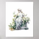 Frauenstatue im Garten Wasserfarben Weiße Flora Poster