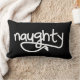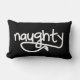 Schwarzweiss-"freche" Kissen mit dem Schwanzzeichnen des Teufels. Sind Sie frech oder sind Sie nett…. Ich denke, dass er frech ist.