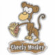 Der Cartoon des frechen Affen genießt ein Stück Kuchen.