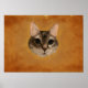 Ein digitales Porträtbild einer Tabbatta-Katze auf einem gelb-orangefarbenen Hintergrund.
