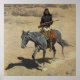 Frederic Remington war ein amerikanischer Maler und Schriftsteller, der für Kunst bekannt war, die Cowboys, Soldaten und Indianer des alten Westens darstellte. Seine Liebe der rauen heroischen Cowboys und Soldaten nahm ihn als Journalist/Illustrator in den Westen und produzierte über 3000 Gemälde und Zeichnungen. Dieses Bild heißt "Apache Scout" und zeigt einen indischen Mut in einer Kavallerie-Uniform, die auf einem grauen Pferd durch die staubigen Ebenen reitet. Er trägt ein Gewehr über seinen Arm.