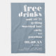 Ein lustiger und einzigartiger Weg, um Ihre Gäste zum rett Ihres Hochzeitsdatums einzuladen - ein echter Genuss, den sie gerne abgeben werden! Vollständig anpassbar. Der Text ist alle rechts ausgerichtet, mit fett weißer Typografie und der Slogline Free Drinks gefolgt von Und Wir werden zu verheiratet auf einem staubigen blauen Hintergrund. Vollständig anpassbar. Sie können Text und Hintergrund in verschiedene Farben ändern, wenn Sie dies wünschen, indem Sie die Option Weitere anpassen wählen.