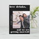 Lustige "Gratis Drinks und wir heiraten" Save the Date Card. Fügen Sie diesem Design Ihre benutzerdefinierte Formulierung hinzu, indem Sie die Felder "Diese Vorlage bearbeiten" auf der rechten Seite des Elements verwenden, oder klicken Sie auf die blaue Schaltfläche "Anpassen", um den Text zu ordnen, die Schriftart und Farben zu ändern, und um diesem Design zusätzliche Informationen oder Bilder hinzuzufügen. Klicken Sie auf "Weitere Einstellungen vornehmen", um alle Bearbeitungsoptionen zu öffnen. Kontaktieren Sie uns für weitere Optionen und passende Artikel.