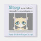 Cartoon, der eine Katze hinter Gittern mit dem Witz: Stoppt unethische Gedankenexperimente, Freie Schrödingers Katze!