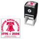 Celebrate the 250th anniversary of American independence every time you stamp with this bold “Freedom Rings Forever” design. A classic bell icon stands at the center, surrounded by curved lettering and the dates 1776 ★ 2026 in strong block type for an unmistakably patriotic look. Personalize the bottom line with your school, family, or organization name to create a custom mark for classroom papers, event invitations, certificates, and keepsakes. The compact 1.5" x 1.5" Trodat 4924 self-inking stamp delivers crisp, consistent impressions in vivid red, making it perfect for daily use in offices, libraries, and history-themed celebrations. Ideal for marking materials tied to the United States’ quarter-millennium milestone, this little stamp brings a big patriotic statement to every page.