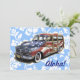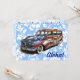 Diese originelle Illustration eines Vintagen Holzbahnhofwagens wird mit einer amerikanischen Flagge kombiniert und ist damit das perfekte Surfauto. Es wird vor dem Hintergrund eines Hibiskus Blumendrucks aus einem Vintagen Aloha-Shirt gezeigt. Passen Sie diese Karte für Ihr nächstes Spiel, GRILLEN, Party oder mit jedem Gruß an.
