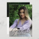 Foto vorne und hinten... Lose und lässige freehand Stil Script Abschluss Einladung Ankündigung mit Mortarboard Graduierung Ikone, perfekt für die High School oder Uni Abitur. Moderne minimalistische Typografie, lässige elegante Schrift "Graduate" Schrift. Erleben Sie diese besonderen Momente des Wachstums und lächeln Sie Freude und Jugend für immer. Laden Sie ein volles Portrait-Mode-Cover-Foto des Absolventen auf der Vorderseite, ein Landschaftsorientierungsfenster-Foto sowie relevante Details der Abschlussfeier auf der Rückseite hoch. Schattet automatisch die perfekten Bereiche des Bildes.