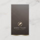 Diese berufliche Visitenkarte des Freelance-Autors ist einfach und elegant und enthält Ihren Namen und Titel in einfachen, dünnen Kleinbuchstaben in der unteren Kartenhälfte unterhalb eines goldenen Ikone einer Feder. Der Hintergrund ist eine geschmackvolle dunkelbrushed Metall-Textur mit einem Farbverlauf, der schwarz in den unteren Bereich mündet und mit einer goldfarbenen Kante endet. Ideal für Druck, Verlagswesen, Literatur, Literatur und berufliches Thema.