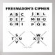 Es ist nicht notwendig, Kryptograf zu sein, um dieses Poster mit der Chiffre der Freemason zu genießen, auch bekannt als die Chiffre des Pigpens, die Masonic Chipher oder die Rosicrucian Chiffre. Lassen Sie andere diese geometrische, einfache Substitutionschiffre, die Buchstaben durch Symbole ersetzt, die Rasterfragmente sind, doppelt übernehmen. Anwender und alle, die Kryptoanalyse genießen, werden begeistert sein!