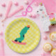 Freeride Snowboarder Grüner Anzug Gelb Pappteller