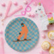 Freeride Snowboarder in Orange Anzug Checkered Pappteller