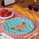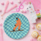 Freeride Snowboarder in Orange Anzug Checkered Pappteller