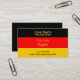 Eine stilvolle, moderne Visitenkarte, die sich für einen freiberuflichen Übersetzer und Dolmetscher in deutscher Sprache eignet. Dieses Design verfügt über ein deutsches Flaggensymbol und kann mit Ihren persönlichen Daten individuell gestaltet werden. Schwarze, rote und gelbe Farben, um Deutschland zu repräsentieren.