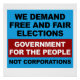 Wir fordern freie und faire Wahlen. Regierung für das Volk, nicht für Unternehmen. Beenden Sie Gerrymandering. End Citizens United. Unterstützung des Gesetzes über die Rechte der Wähler.