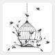 Freie Vögel mit offenem Vogelkäfig Quadratischer Aufkleber