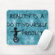 Ein grinsender Dummkopf auf einem Unicycle trägt die Mitteilung, die "Wirklichkeit ist A tun es sich Projekt." Großes Geschenk für einen unabhängigen, freien denkenden Geist oder kaufen ihn als Erinnerung, um für selbst zu denken.
