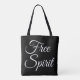Tragen Sie Ihr Wesentliches mühelos mit unserem "Free Spirit" Totbeutel mit elegantem, fließendem Text, der Freiheit und Selbstdarstellung ausstrahlt. Es ist der ideale Begleiter für diejenigen, die das Leben gezähmt und unentschuldigt leben.