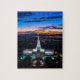 Eine Ansicht des freigebigen LDS mormonischen Tempels von der Echo-Spitze, Teil der Vorberge der Wasatch Berge. Die tiefen Blues der Dämmerung vereinbaren herein als das Orange und gelbe Schatten des Sonnenuntergangs treten unterhalb des Horizontes zurück. Im Abstand kann man die Stadtlichter von freigebigem und von Centerville sehen, und die Reflexionen des Himmels weg vom ruhigen Wasser des Great Salt Lake und des Farmingtons bellen. Entlang dem Horizont sind die Spitzen von Antilopen-Insel und die von Stansbury und von Oquirrh Bergen sichtbar.