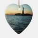 Fotografie des Freiheitsstatuen am Sonnenuntergang. Erhellen Sie herauf die Ferienzeit mit diesem Symbol der Freiheit und der Freiheit!