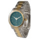 Mit dieser dunkelgrünen Armbanduhr mit goldfarbenen Zahlen zeigen Sie Ihren guten Geschmack.