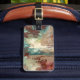Die Grafik, die auf diesem Gepäckanhänger gekennzeichnet wird, basiert auf einer regionalen Encausticgrafik durch fließende Cheryl holz betitelte "Freiheit." Die Beschwörungsformel "Freiheit liegt in den anwesenden" Läufen durch die flüssigen Muster, die indem sie eine Flamme an der heißer Wachs Encausticfarbe und -pigmenten geschaffen werden, anwendet.