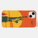 Dieses iPhone 15 Gehäuse verfügt über eine Pop-Kunst-Illustration der Freiheitsstatue. Das Design ist in warmen und entspannenden Farben gehalten.