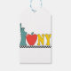 Eine Grafik mit der Freiheitsstatue und dem Apfel und dem New Yorker Taxis-Schachbrett
