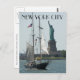 Travel Postcard mit einem landschaftlichen Foto-Bild von den New Yorker Hafenbooten und der Freiheitsstatue. Wählen Sie aus einer matten oder glänzenden Stilkarte.