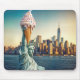 Die Freiheitsstatue ist humorvoll dargestellt, als sie anstelle ihres Set gegen die Skyline von New York City eine riesige Eistüte hält