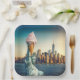 Die Freiheitsstatue ist humorvoll dargestellt, als sie anstelle ihres Set gegen die Skyline von New York City eine riesige Eistüte hält