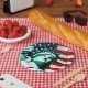Das Freiheitsstatue ist eins der iconic Symbole von New York City oder des USA. Dieser Vintage Entwurf, der das Porträt von Dame Liberty mit der US-Flagge im Hintergrund kennzeichnet, macht das perfekte Geschenk für jedermann vernarrt in NYC.