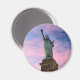 Ein schönes Foto der Freiheitsstatue gegen einen wunderschönen pastellfarbenen rosa und blauen Himmel.