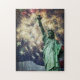 Schönes Foto Composite mit der Freiheitsstatue gegen eine US-Flagge und Feuerwerk Hintergrund. Das Bild erhält ein grunges Overlay für einen alten nostalgischen Look. Ideal für alle patriotischen amerikanischen Feiertage. Dieses Bild kommt auf vielen Zazzle-Produkten.