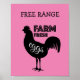 Bild eines Hühners mit Textlesen: "Frische Eier aus der Freilandhaltung". Das Wort "Freie Reichweite" kann geändert werden.