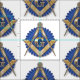 Freimaurer-Freimaurergewebe-blaues Häuschen Stoff