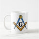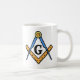 Diese einfache Tasse kennzeichnet eine nette Wiedergabe des Freimaurerquadrat- und Kompassemblems auf beiden Seiten.
