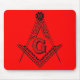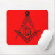 Freimaurerquadrat- und KompassMausunterlage mit rotem Hintergrund.