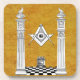 Für Verkauf ist ein Freimaurergetränk-Untersetzer, der die zahlreichen Freimaurersymbole kennzeichnet und umfaßt: die Säulen, karierte Plasterung, ändern und das Quadrat und die Kompassse, die durch Strahlen des Ruhmes umgeben werden.