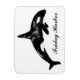 Ein wunderschönes Aquarellbild eines Orca, mit Text, der auf Ihre Bedürfnisse zugeschnitten werden kann.