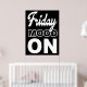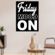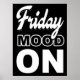 Freitag Stimmung. Funny Design mit Typografie. Witziges Zitat. Freitagabend Design mit lustigem Sprichwort. Schwarze Version.