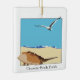 Ornament mit einem zweidimensionalen Meeresmöbelbild, das mit Wellen über den Strand fliegt. Datum Anpassbar auf der Rückseite. Clearwater Beach, Florida vorne im Schriftart Baskerville
