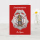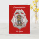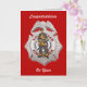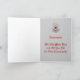 Diese rote Feuerkarte ist auf der Vorderseite mit einem Spielzeug-Feuerwehrmann verziert, der auf dem Abzeichen eines Freiwilligen Feuerwehrmanns überlagert ist. Der Gruß im Inneren kann individuell angepasst werden.