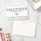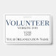 Dieses Abzeichen mit individueller Identifikation enthält den Titel "Volunteer", der in einem großen, fett blauen Schriftart nahe der Spitze des Abzeichens gedruckt wurde. Der folgende Text enthält die Informationen über Freiwillige oder Mitarbeiter und den Namen des Unternehmens oder der Organisation. Das Abzeichen zur Identifizierung von Freiwilligen ist mit einem schlichten grauen Rahmen umgeben. In der Mitte befindet sich ein Firmenlogo oder ein Firmenlogo, das durch ein eigenes Logo oder ein anderes Bild ersetzt werden kann.