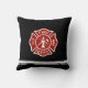 Ein themenorientiertes schwarzes Wurfskissen des kundenspezifischen Feuerwehrmanns. Das Malteserkreuz ist Vertreter der amerikanischen Feuerwehrmänner und der Feuerrettung.