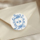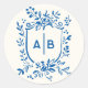 French Blue Botanical Crest Wedding Monogram Runder Aufkleber
