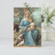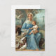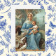 Die Blue-Madonna-Notizkarte zeigt ein Bild einer schönen antiken französischen heiligen Karte, die Ende des 19. Jahrhunderts gedruckt wurde. Jesus und die gesegnete Mutter sind umgeben von flatternden weißen Tauben und einer rauen Waldlandschaft.