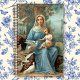Das religiöse Notizbuch der französischen Blauen Madonna zeigt ein Bild einer schönen antiken französischen heiligen Karte, die Ende des 19. Jahrhunderts gedruckt wurde. Jesus und die gesegnete Mutter sind umgeben von flatternden weißen Tauben und einer rauen Waldlandschaft. Das sanfte Blau- und Aquabild wird sowohl auf der Vorder- als auch auf der Rückseite aufgedruckt.