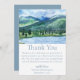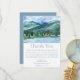 Dieses schöne Dankeschön ist ideal für Paare, die gewollt haben, den Gästen für ihre Zeit und Großzügigkeit zu danken. Diese können für eine Verlobung, Hochzeit oder Dusche verwendet werden und perfekt mit anderen Elementen des Theme Serene Watercolor Lake kombiniert werden. Die Oberseite des Designs weist eine Berg- und Seenlandschaft auf, und die Rückseite des Designs ist in französisch-blau gefärbt.