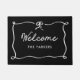 Dieses elegante und stilvolle Black Doormat besticht durch einen skurrilen, von Hand gezeichnet, weißen Rahmen mit einem trendigen französischen Bogen und eine schicke Vintage Schrift, die "willkommen" heißt.