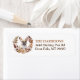 Die links Seite dieser Rücksendeadressen-Aufkleber zeigt ein Portrait eines bezaubernden braunen französischen Bulldoggen. Das Bild ist in einem hübschen Herbstblumenkranz und Blätterkranz in Braun-, Bräunungs- und Cremetönen eingefasst. Ihr eigener Text ist rechts braun und goldbraun.